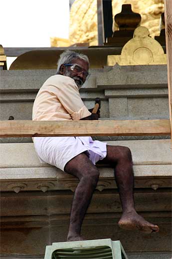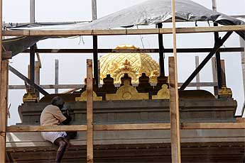 Slowly the scaffolding is coming down and the golden Vimanan is revealed.