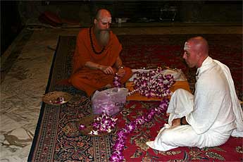 We got a box of orchids and it was incredible that they were packed one by one in perfect formation.. and it seemed like thousand came out of that one small box. The monks make garlands for the celebrations during the night.