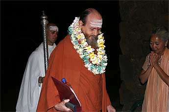 After some bhajans in the temple, at 8 PM, Satguru Bodhinatha Veylanswami is ceremoniously paraded into Kadavul temple.