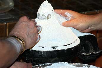 Then the amazing Siva abhishekam begins with Paramacharyas Palaniswami and Ceyonswami first doing vibhuti abhishekam.