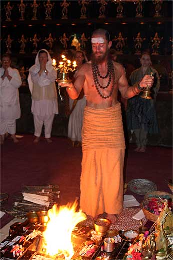 The evening ceremonies begin with a homa...