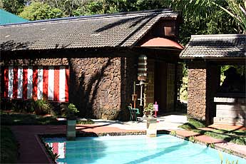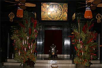 He agree, and a year later the Nataraja arrived in a crate and was first placed on the edge of the pali, the cliff looking down over the river. Gurudeva one evening asked Lord Nataraja... "Where would be a good place for us to install you," then the next morning on March 12, 1973, Lord Muruga came in a vision, and with his Shakti Vel struck three times a step that was the main entrance of the estate. The monks were surprised, "But, wait, that's the main doorway?... " After considerable struggle the monks placed the Deity at the very spot Lord Muruga had imbued with his powerful Shakti and Gurudeva instituted immediately the 24-hour vigil-- a monk on duty, awake, alert, doing puja, sadhana and studies for 3 hour periods. Slowly the physical temple came up with the worship and sadhana.