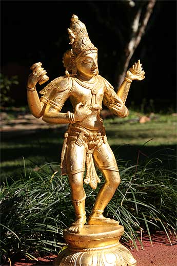 The story began in 1969 when Gurudeva discovered the island of Kauai and bought the estate up in the Wailua Homesteads overlooking the river... Here he began to train his monks and settle down to bring Saivism to the West....On the 1972 India Innersearch, Gurudeva was in New Delhi and he said to a few of his monks "Let's go for a walk." They arrived at a small shop called "Nirmala's Copperworks" and in front was this giant, six-foot tall bronze image of Nataraja.