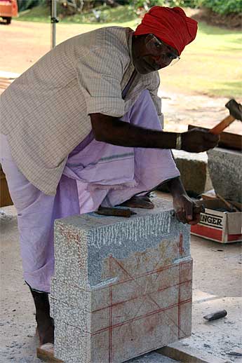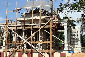 It's an exciting time at the temple as the Vimanam is slowly unveiling... It seems this rock requires some adjustments....