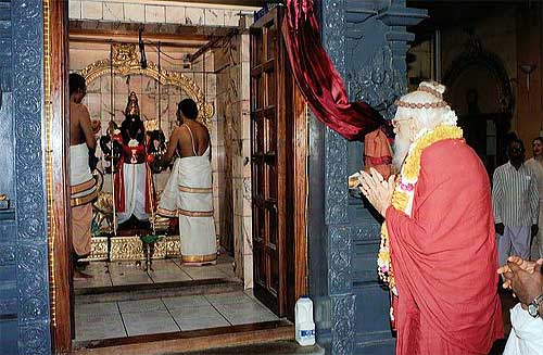 Photo shows Gurudeva worshipping at the Highgate Murugan temple in North London during the 2001 European Innersearch. Bodhinatha will be here on Friday, 25th March, as the guest of honor at the Satguru Yogaswami Mahasamadhi celebrations.