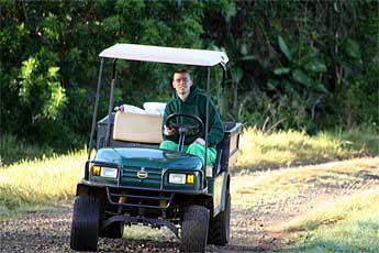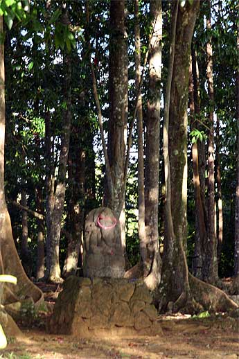 Our photographer at the Rudraksha forest, where a little Ganesha greets visitors at the entrance.