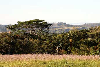 The sun breaks over the eastern tree line... it's cool this morning, at a low of 54 degrees fahrenheit, which was a new record for Kauai on this date...