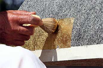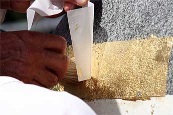 After a few hours, the sizing dries to just the perfect "tackiness" and it is time to apply the gold leaf..