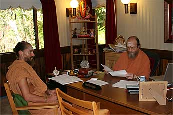Meanwhile Sannyasin Saravananathaswami is reviewing correspondence, invitations from temples and plans for Bodhinatha's future travels. See the Guru Travels page for a picture of Bodhinatha's busy schedule.