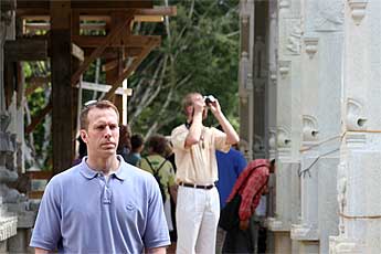 "Impressive indeed," one guest takes pictures of the symbols on the pillars.