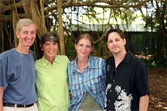 Meg and Ethan are here on their second visit to the monastery. They came last year after their wedding on the island and today returned with Meg's parents Dale and Darryl. They enjoyed the morning tour and were very interested in Gurudeva's teachings so the young couple bought Gurudeva's trilogy of books to begin daily study of the Master Course.