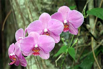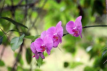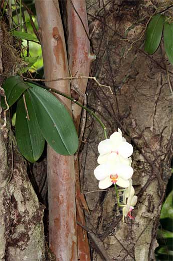Now we take you for a silent nature walk to the Path of the Saiva Saints, where, on the north end corner there is a orchid show in progress from orchids the monks have placed in various trees which are all blooming...