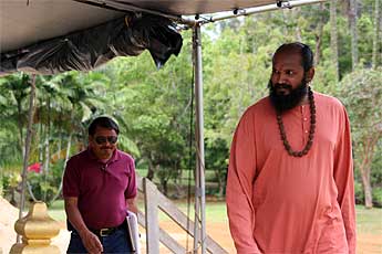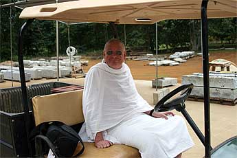 Several contractor's bids are being sought. The job will also involve extensions out from the main foundation of Iraivan in front of each of the three Chinna Gopurams. Sannyasin Yoginathaswami guides him.