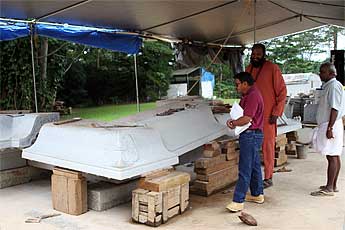 Ben from a local contractor company has come to do an estimate on pouring the foundations for the Nandi Mandapam.