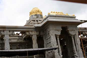 The outer stones of the roof of the next gopuram in progress.