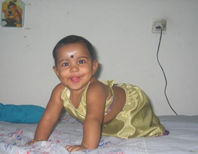 Shishya Lalitha Ponniah feeds her daughter with solid food for the first time.