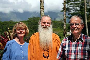 Paramacharya Palaniswami's sister, Devi and father, Homer Gibson... having a wonderful family visit together. Both attended the morning kulam breakfast meeting today, seeing the publication's team at work, then enjoyed a tour of the grounds (including the rarely visited Bali Hai waterfall), and then lunch. In the afternoon, they came for a special tour of the monastery vegetable garden, with dad sharing his years of expertise on tomato growing with the monks. Devi brought ice cream in the afternoon as a sweet gift to the hard-working mathavasis. She commented yesterday on Paramacharya Ceyonswami's chanting during puja in the temple each morning: "He has the sweetest voice, the most perfect voice for chanting. I can't think of anything else when he is chanting."