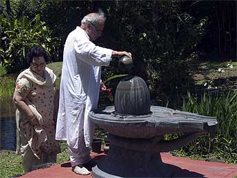 Prakash and Veena Bajaj visited us today from New York, originally from Delhi. They are great Siva bhaktas and Mr. Bajaj performs hours of puja and other religious sadhanas every day.