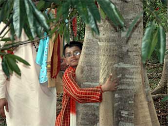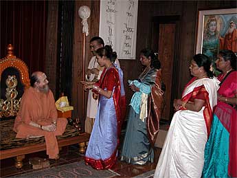 Everyone comes for a joyous satsang and darshan with Bodhinatha.
