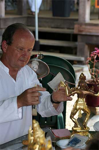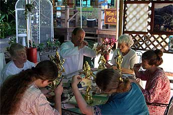 The gold leafing of the Tandava's is proceeding well. Our Wailua Mission members did 12 more today.