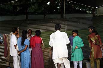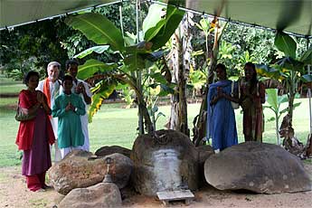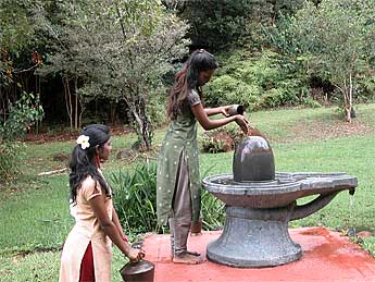 Pilgrim family from Singapore: Bhani Karthigesu, his wife Rema, their two daughters, Suhashini and Thrishna and son Vivek... worshipping at the Narmada Lingam on the path of the Saiva Saints.