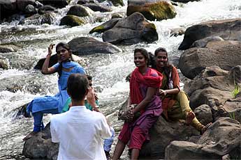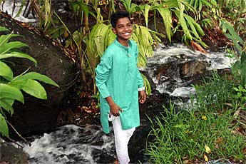 Vivek enjoys the stream. It's quite a change from the urban world of Singapore!
