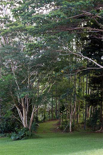 Here is the family yesterday afternoon going for a nature walk... first the Rudraksha forest...