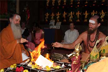 Paramacharya Palaniswami presides and burns the prayers.