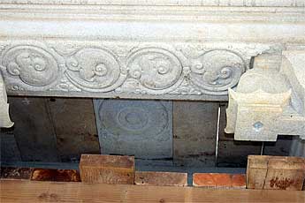 A look up at the beams of the roof of the Gopuram.