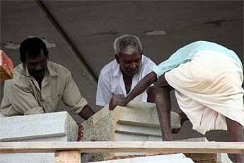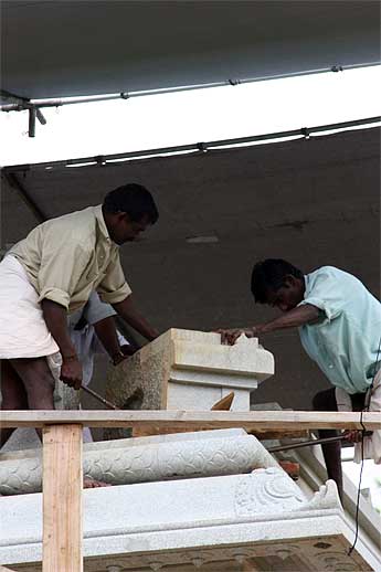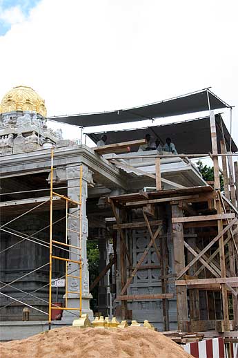 Iraivan has been very active... the crane came early this morning for a lift of more small stones for the North Chinna Gopuram.