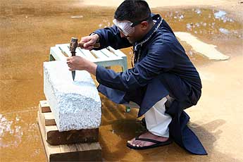 This morning ended with their new homemade chariot going around the temple on the black pavement. Everyone was dancing because the pavement was so hot! They sprayed it down with a hose and the water steamed off.
