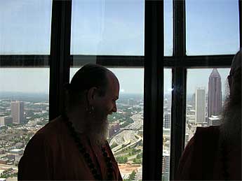 Bodhinatha spent Friday morning giving individual darshan blessings to us, after that we took of in a Pathfinder SUV to the tallest Restaurant in the Western Hemisphere at the Westin in Atlanta for lunch. Here we took up the glass elevator, and went up to the 72nd floor for lunch.
