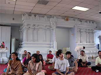 Temple devotees listening to the talk by Bodhinatha