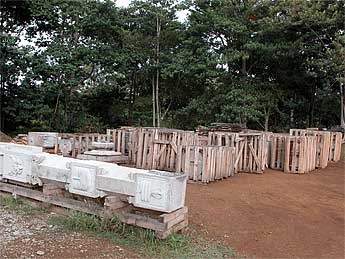Isani Alahan explains to Mary Beth how she and some of the devotees process the fruits and beads to make beautiful jewelry.