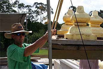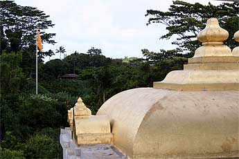 Reverend Koho Takata of the Kapaa Hongwanji Buddhist Temple brought 45 fellow members of the Honpa Hongwanji Ministers' Association (from 36 temples across the state of Hawaii) for a quick visit to the monastery today. They have conclaved on Kauai for alseminar under the direction of Bishop Chikai Yosemori of Honolulu. They are practitioners of the Jodo Shin school of Pure Land Buddhism founded in Kyoto, Japan in the 13th century. Here they are on the bus getting ready to return to their important work of helping to direct the future of Buddhism in the Hawaiian islands. They loved temple and some got "stuck in meditation" in Kadavul.