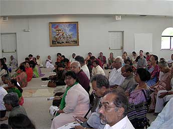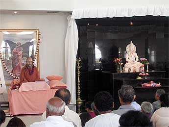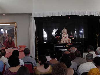 Meanwhile, Satguru Bodhinatha gives a beautiful talk on the importance and significance of temple worship inside the Chinmaya Centre mission on the temple grounds.