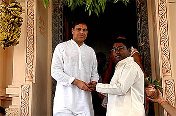 Our carving village in Bangalore is a special place, really more of an ashram than a village. Just last week a European photographer documented the amazing craftsmanship there. Another, little-known side of it is Artha Enterprises. This is a business which our site manager's two sons, Senthil and Thurai, have started. That's Senthil on the right standing at the sanctum doorway at the consecration ceremony a few days ago.