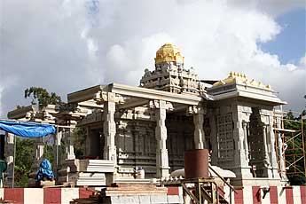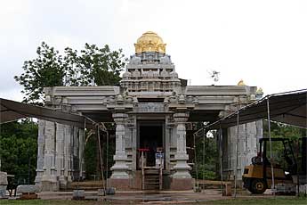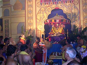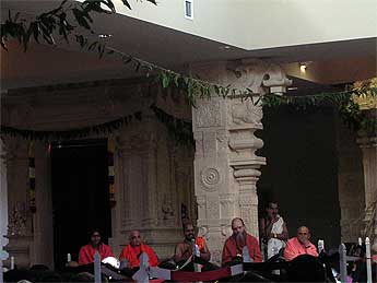 Back at the homa tent, Lord Venkatheswara was invoked for the coming day of the Maha Kumbhabhishekam.