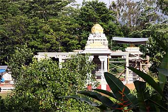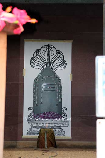 On the way to the new temple, we passed the monastery s existing house of worship, a small wooden temple with a colorful interior honoring the god Shiva. Visitors need not be Hindu to enter the temple and take part in a daily meditative ritual ceremony, which lasts about one hour.