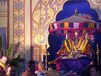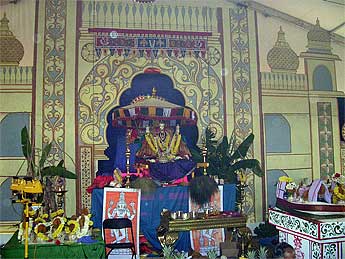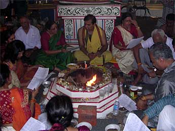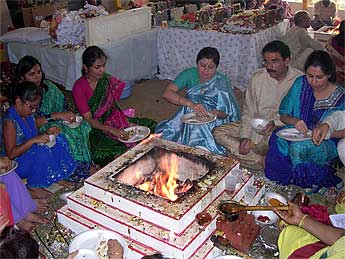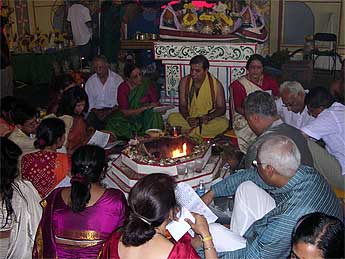 Here is a group of devotees at one Homa pit, lead by Priest Anand Dixit from the Hindu temple of Ohio, he was brought here to perform ceremonies for Lord Krishna in the form of North Indian ceremonies.
