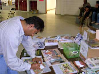 By the entrance to the Auditorium, we set up a table so that anyone could come and sing up to receive their free informative Hindu Literature in the mail.