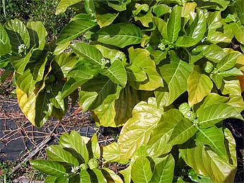 Happy noni plants are growing strongly on Himalayan Acres.