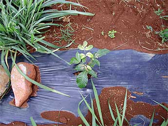 Not much to see, but this Honduran mahogany tree is actually doing quite well. Several hundred of these were planted a few months ago and are doing well despite our lack of rain.