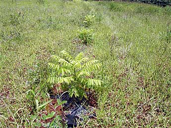 This shows a strip of ironwoods, just nine months old or so, at the left of the picture. Many are not five feet high. We've seen several of our stands of ironwoods, planted for windbreaks, double in height in a matter of months.