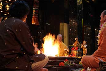 Shailaja and Nat, to be married on Sunday on Kauai, were our guests at this morning's homa. Congratulations to you both! Shailaja's mother had organised the visit to the temple so that the young couple would get Bodhinatha's blessing before the wedding.