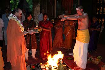 Someone asked what the "Garbanyasa" ceremony signifies. "Garba" means womb and this ceremony is usually done near the half-way point in the cycle of the temple's manifestation, which is now.