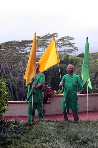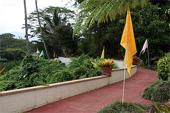 Planting flags along the paths bring a gaiety and festive spirit to the property as they flap in the wind... Gurudeva loved these flags....