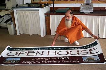 The Ganapati Kulam has been working on lots of signs and banners. Natarajnathaswami puts his artistic design talents to work for this welcome banner that will hang at the entrance...