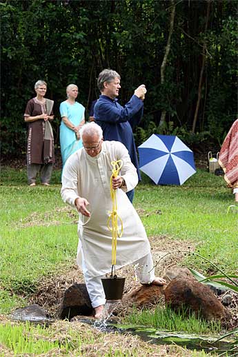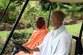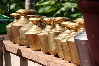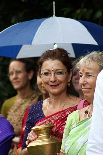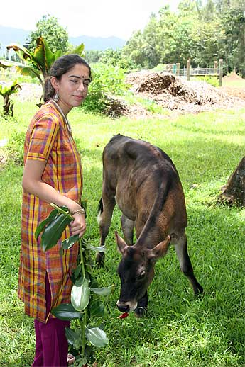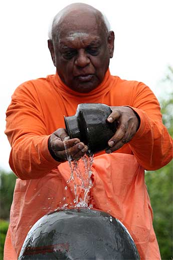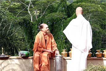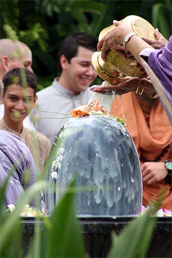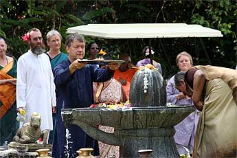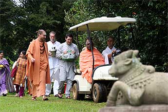 Saravananathaswami and Sadhaka Tejadevanatha led the group this morning. The milk that was just received from our two cows morning milking is brought out