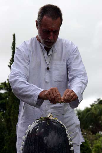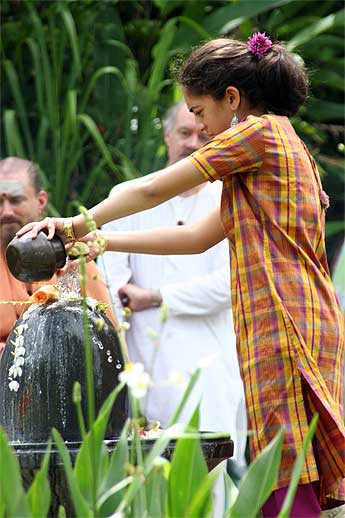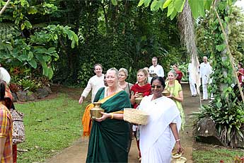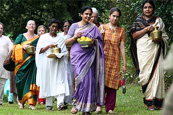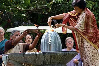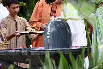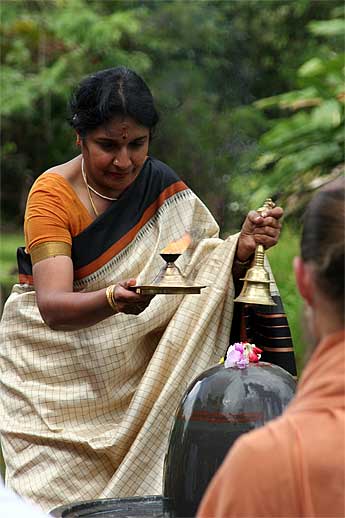 At 9 am a simple but remarkable group worship of the Narmada Lingam on the Path of the Saiva Saints started from the Aadheenam, which comprises today's photo documentary... it was so special and beautiful we did not have the heart to cut out too many photos...